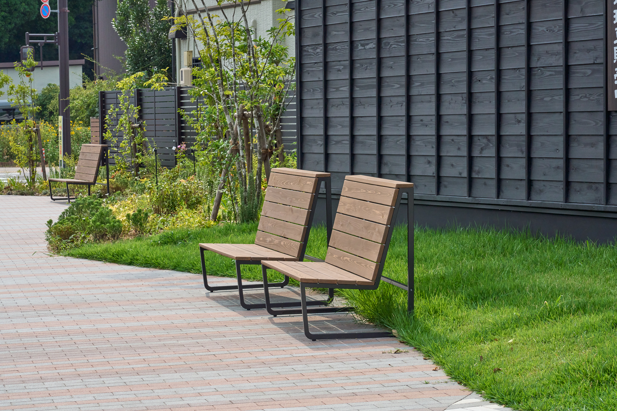 上さま|それと、TRUNK benchの端部の処理も検討してほしいです。組み合わせたときに端が歩行者に鋭角に向いてしまう部分が少し気になったので、設置方法を少し変えました。