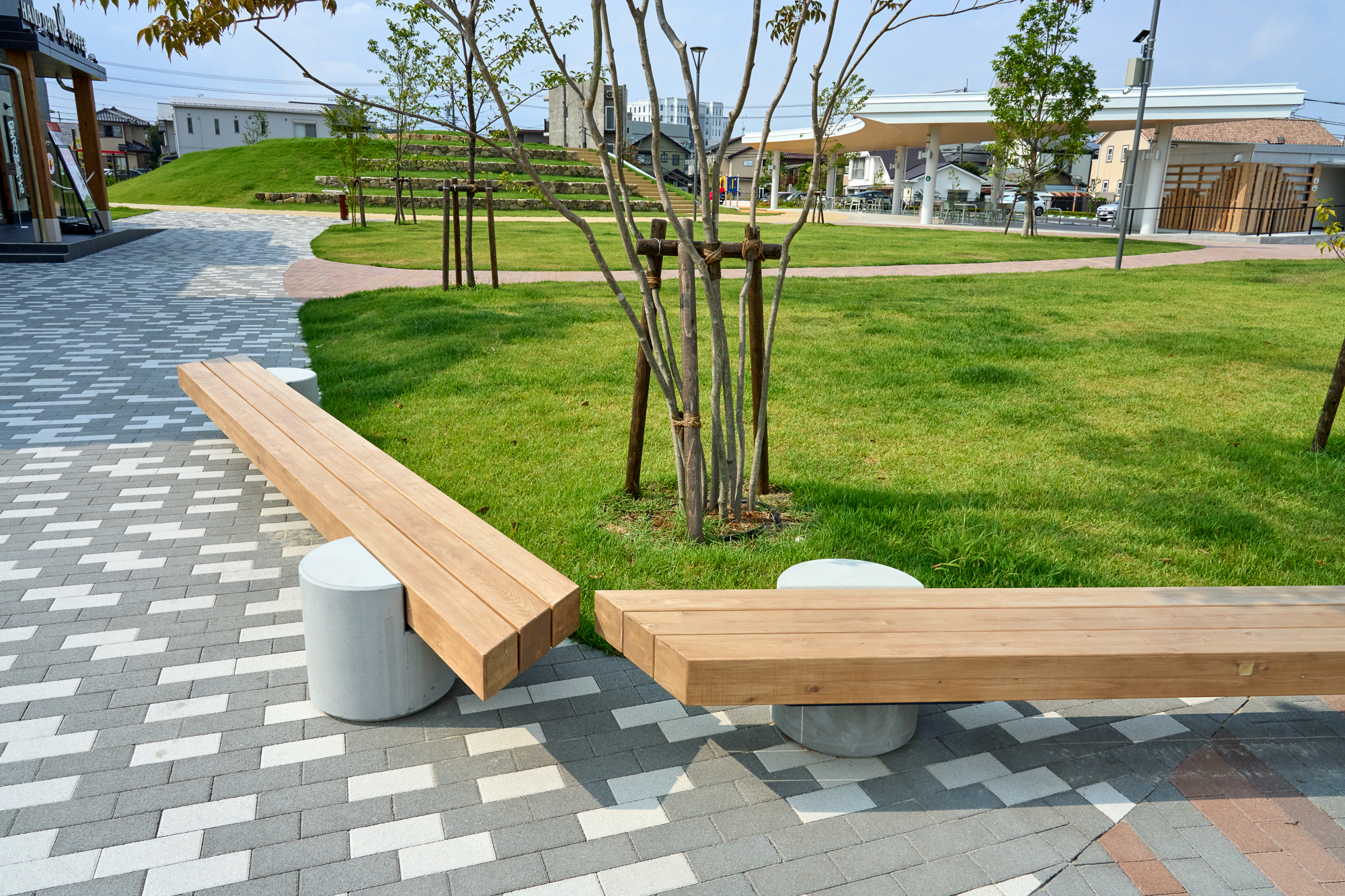 TRUNK benchはあえて固定していません。もちろん簡単には動かせませんが、公園は「竣工して終わり」ではなく、 これから利用される中で変わっていく場所。経年の中で利用状況に合わせて少しずつ配置を配置を変えていってもらえればいいなと考えています。