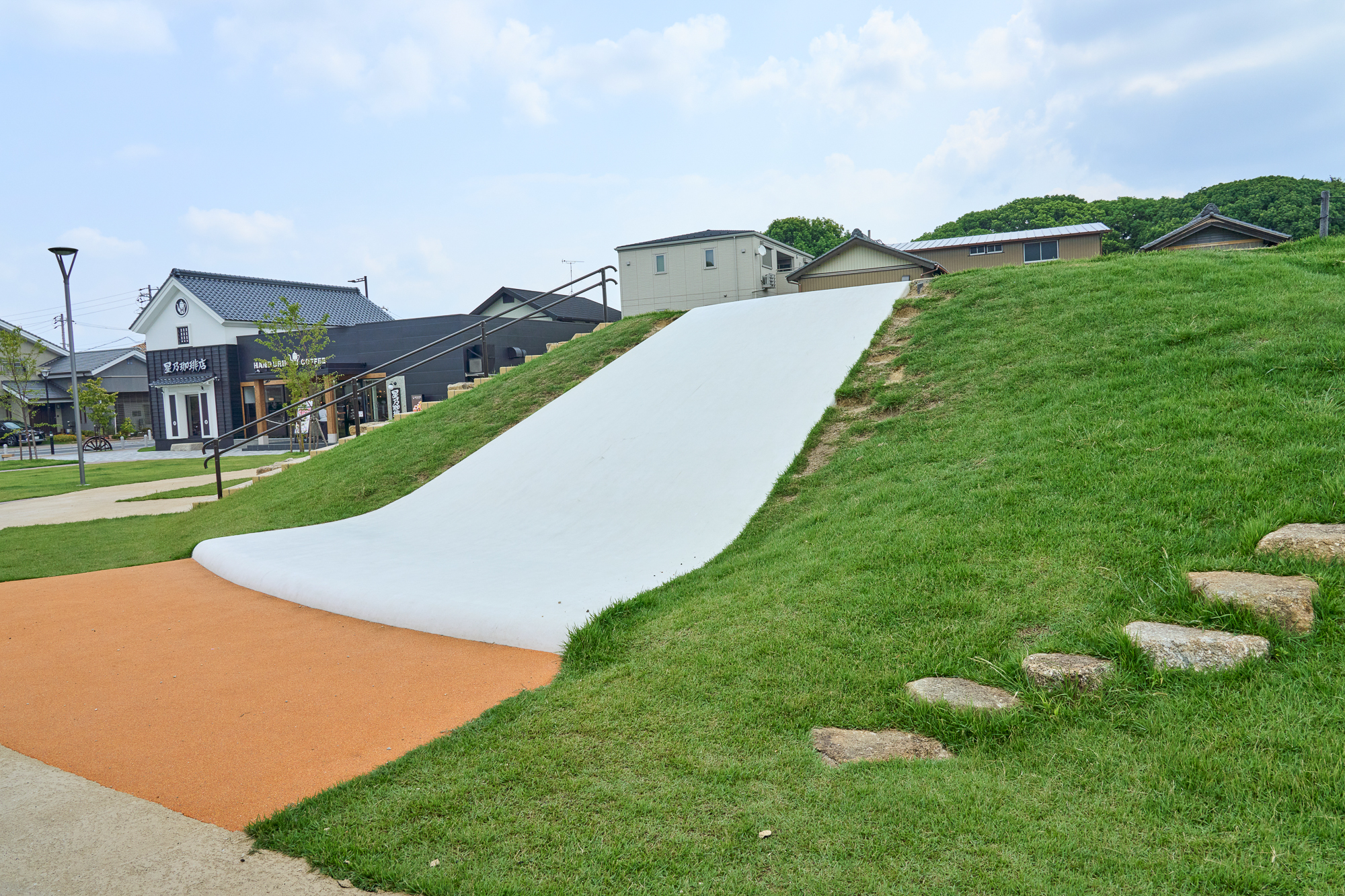 スライダーは、子どもが「すべって下りる」ことで『ここまき山』での遊びがひと区切りつく、大事な仕掛けなんです。山を登って、頂上でちょっとワクワクして、最後にすべって下りる。