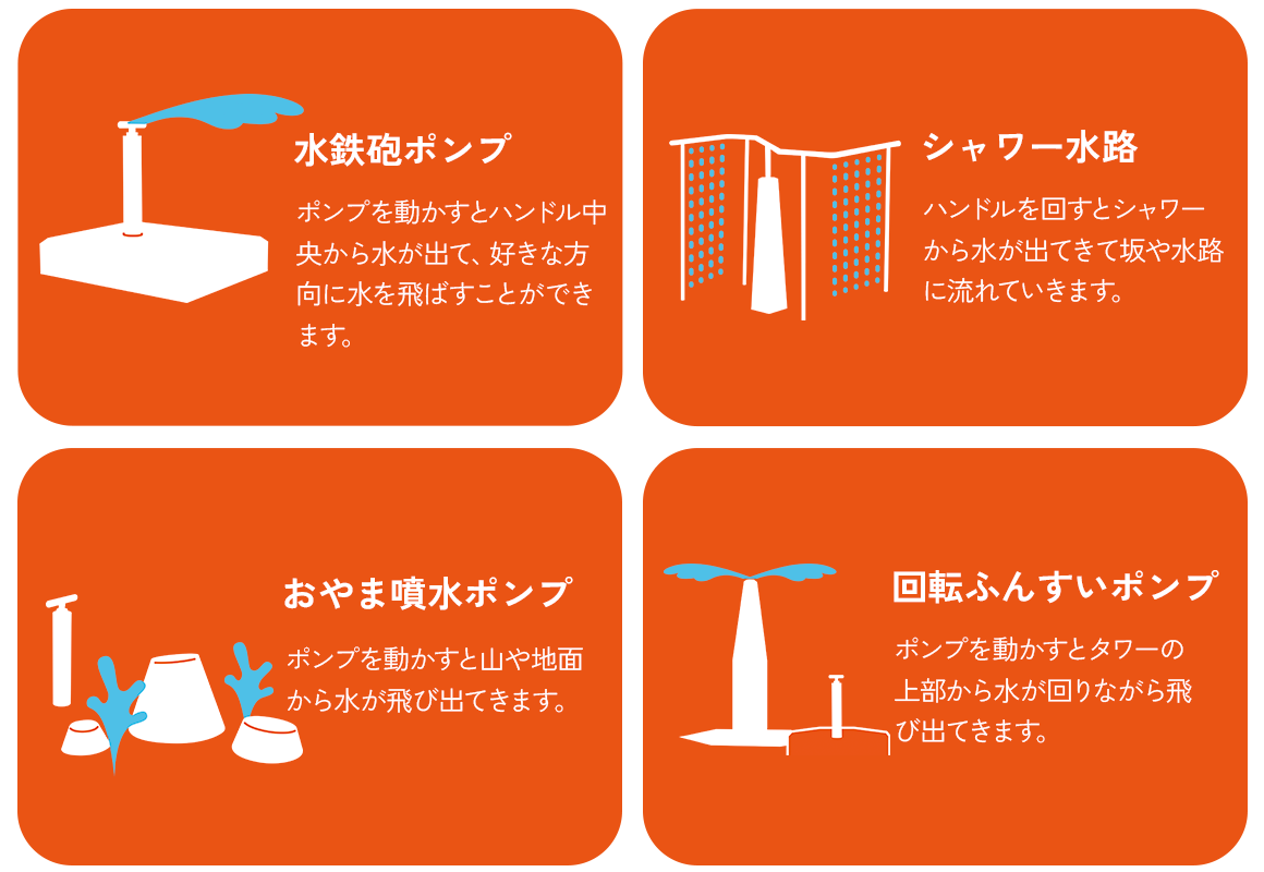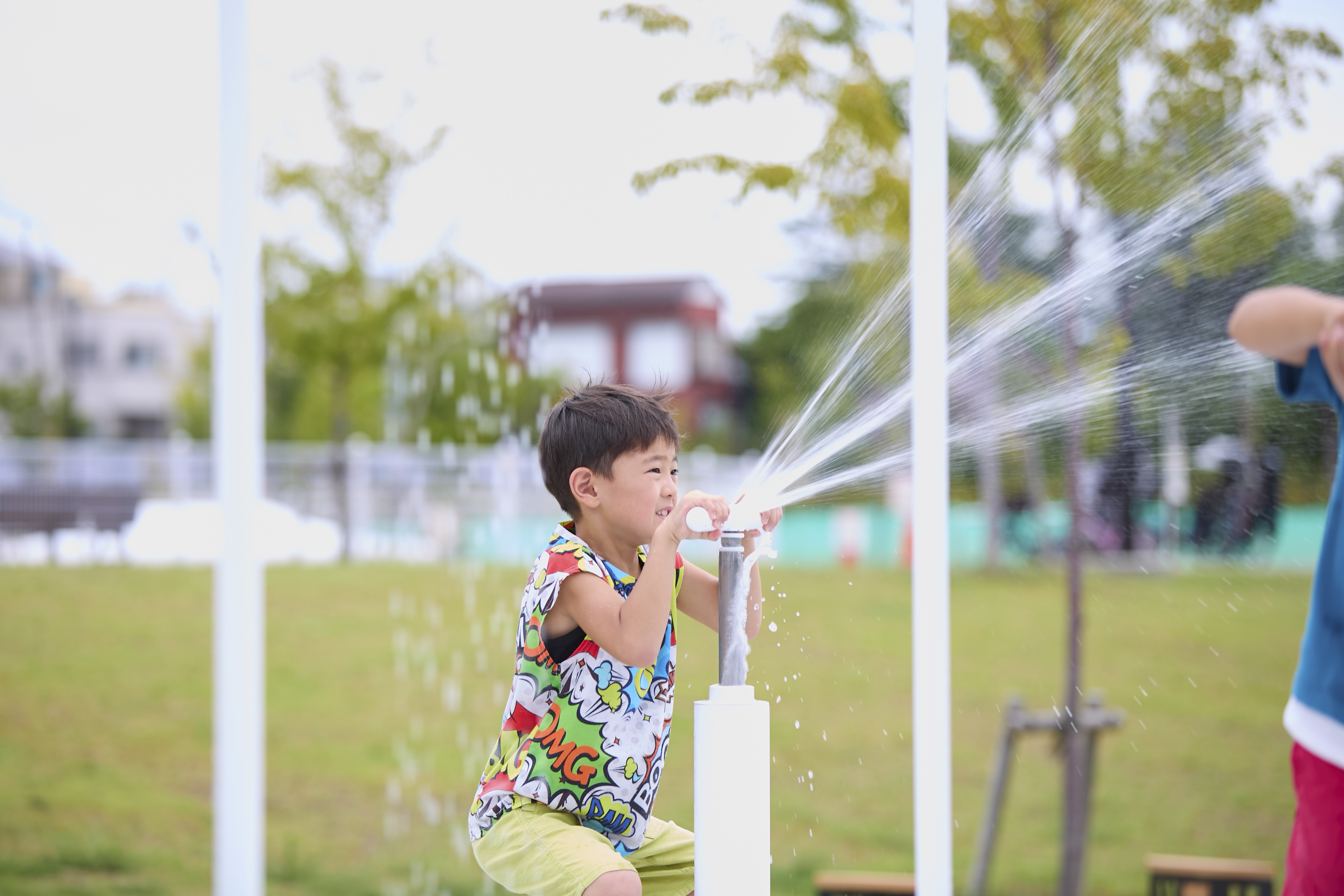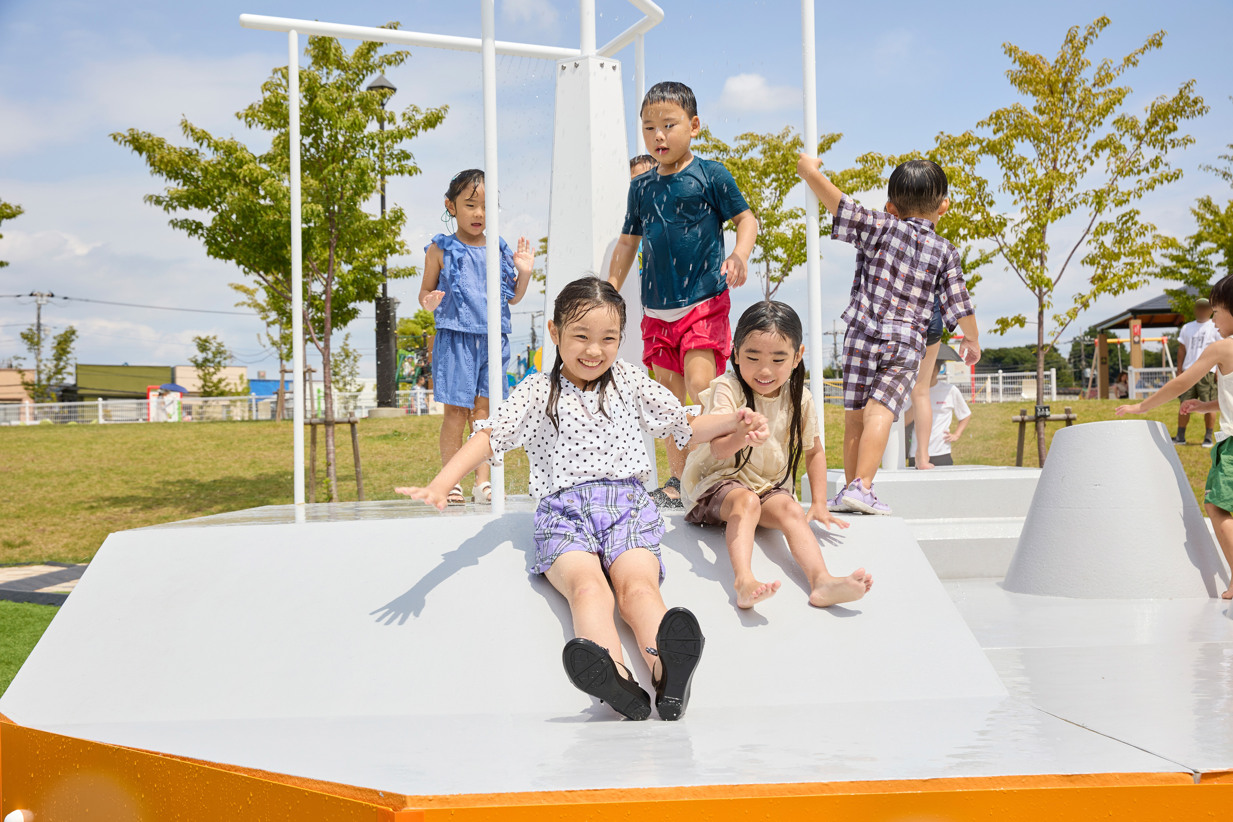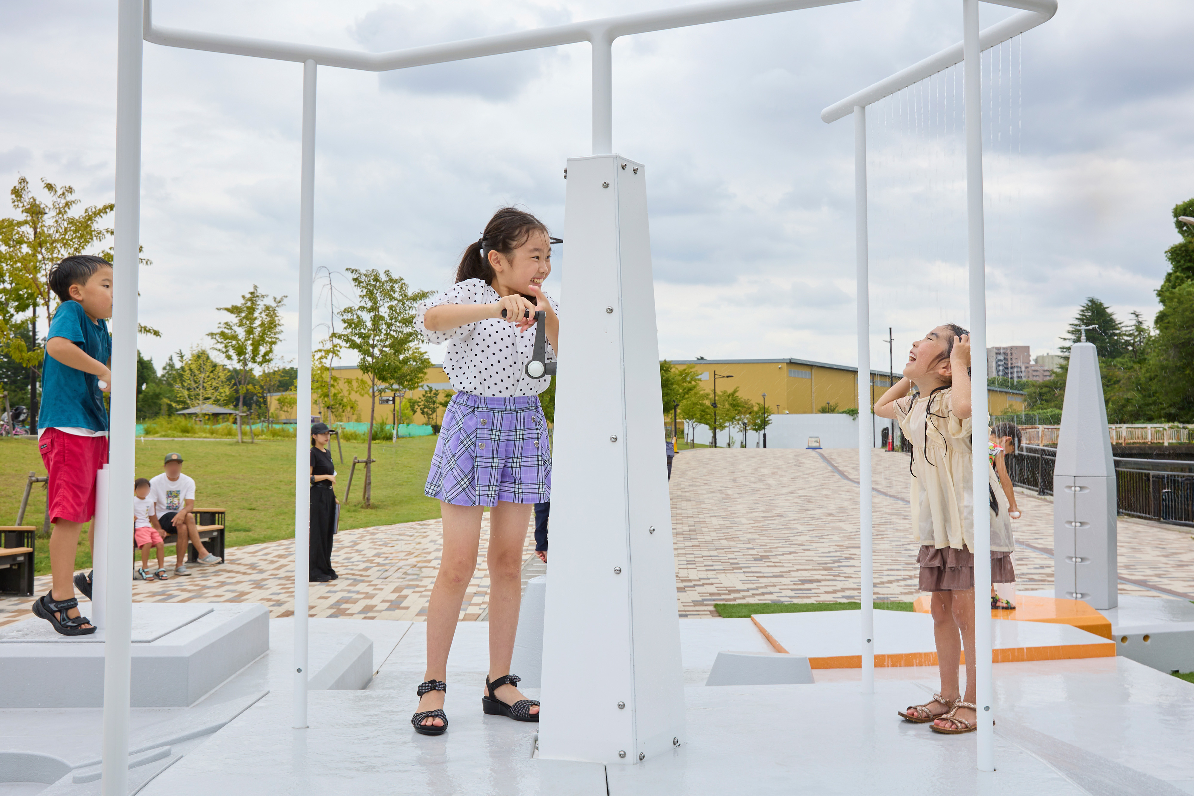 遊具として遊ぶ機能だけでなく、都市公園における「水辺の体験」「涼みの場」「交流の場」をつくり出す役割も担います。