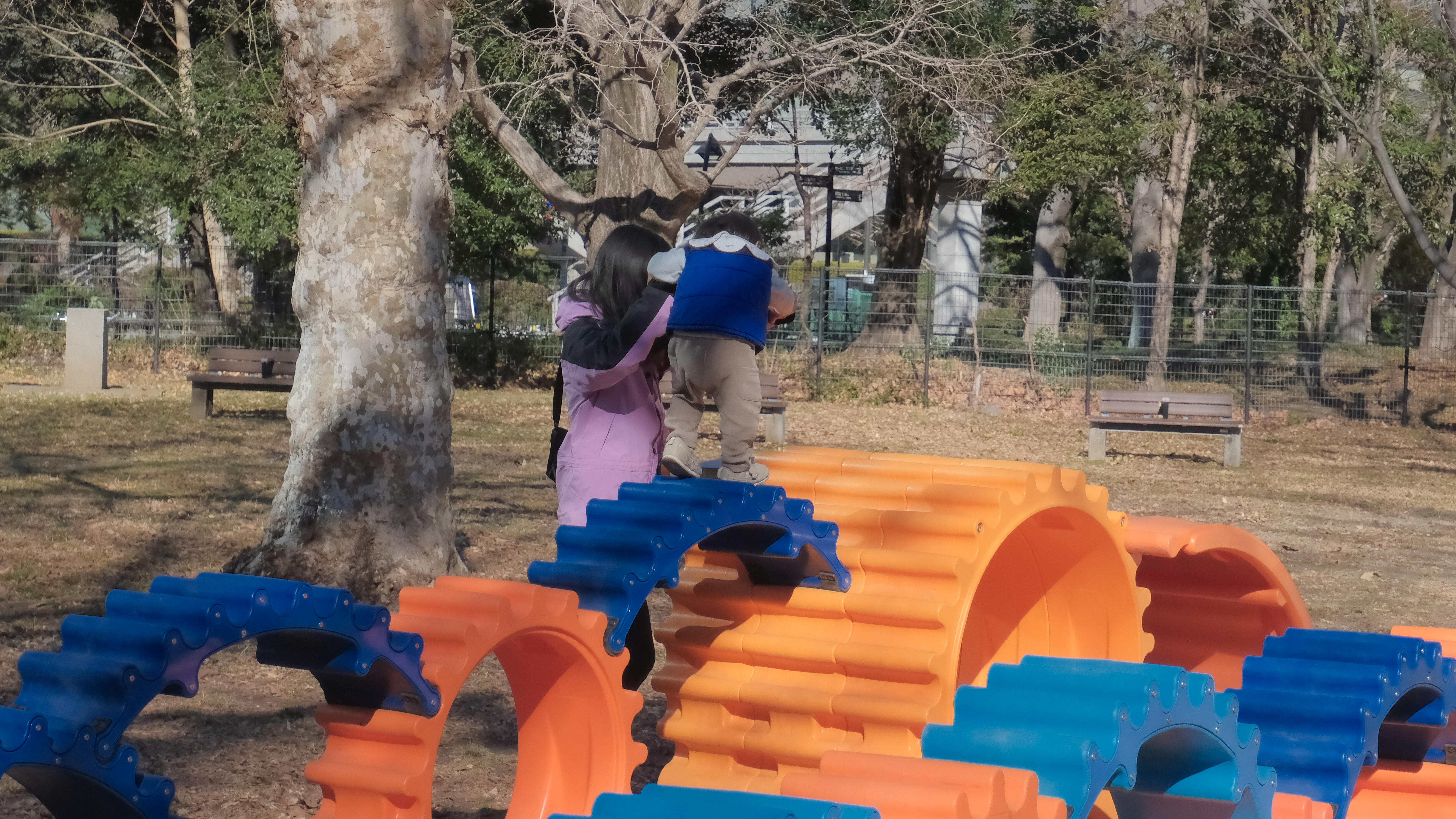ひとりでも歩ける子たちは、よじ登って、わたり歩いて、