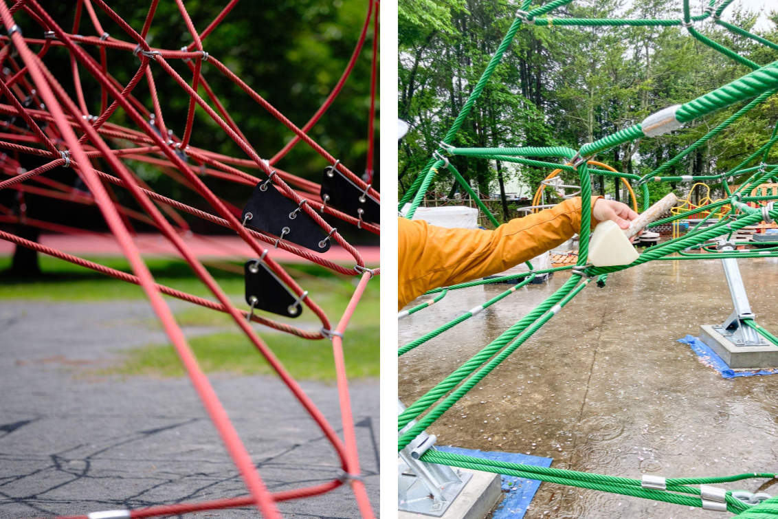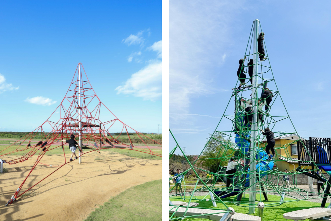 ロープだけの遊具だと、動きがどうしてもゆっくりになり、遊びが広がりにくいですが、