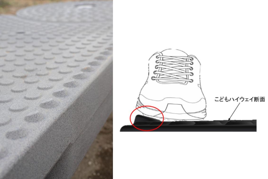 さらに、縁の部分は、足裏で感覚的に認識できる程度に突起の高さをわずかに高く設計することで、