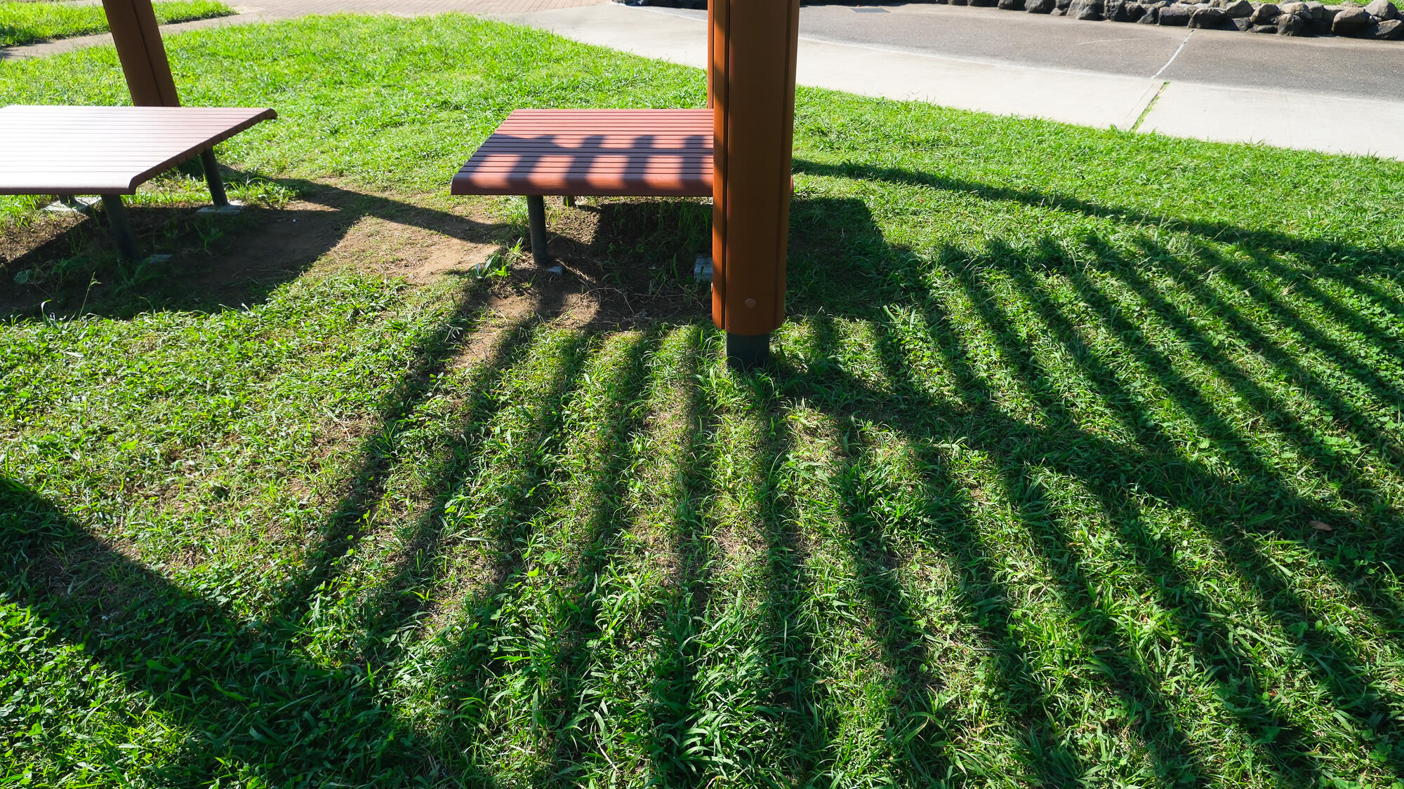 もともと設置されていたベンチの上にパーゴラを増設。周囲には植栽もありましたが、それだけでは十分な日陰を確保できず、真夏の利用には課題がありました。パーゴラの設置によって、安心して腰をかけられる日陰空間が生まれ、利用者の滞在環境が大きく改善しました。